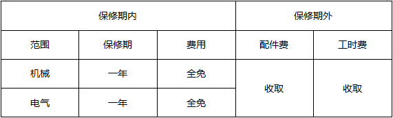 8)保修范圍內,免收人工服務費;保修范圍外,只收取相應的配件費和工時服務費。因材料質量和制造工藝產生的缺陷,屬保修范圍;易損件及人為原因造成的損壞不屬保修范圍。